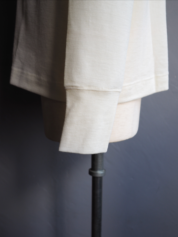 丁寧な縫製仕様です。裾はタタキ処理をすることでカットソー感覚でも着用していただけ、